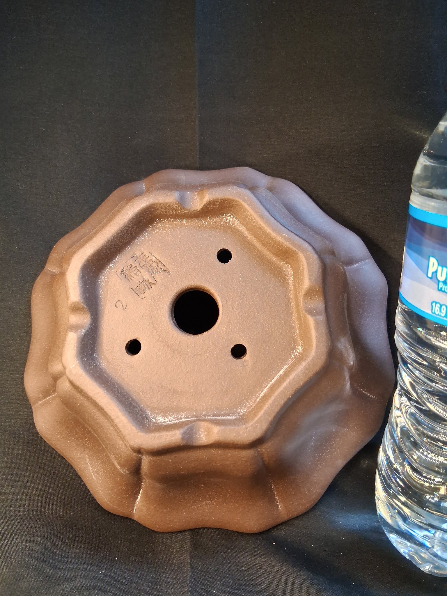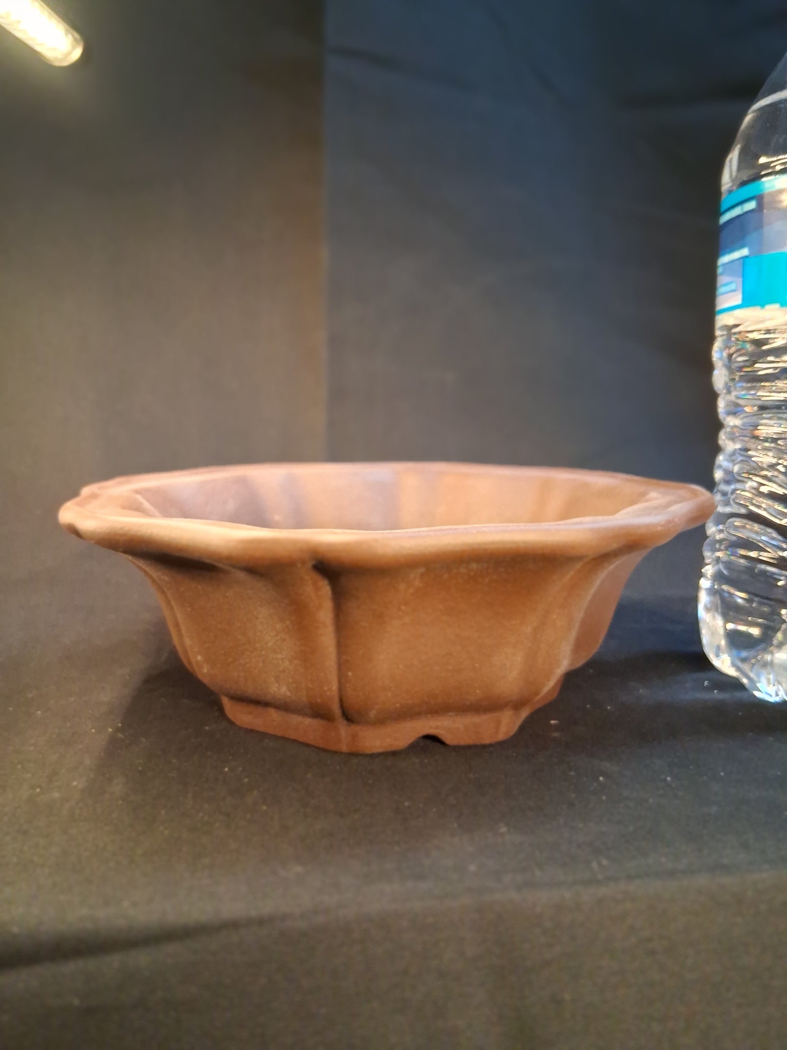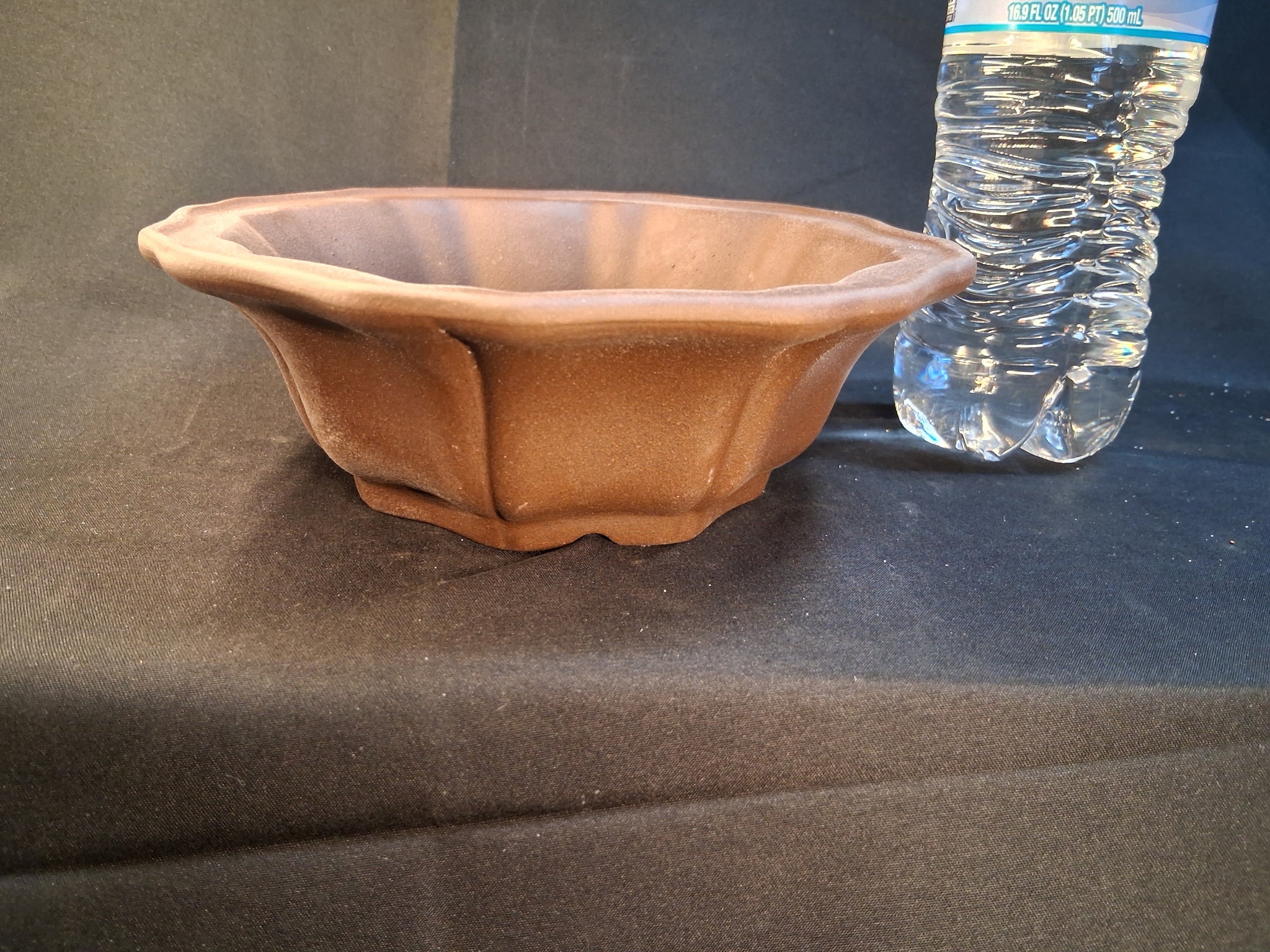 Unglazed flower shaped bonsai pot. Approximate dimensions inside 5 1/2" x 1 3/4"