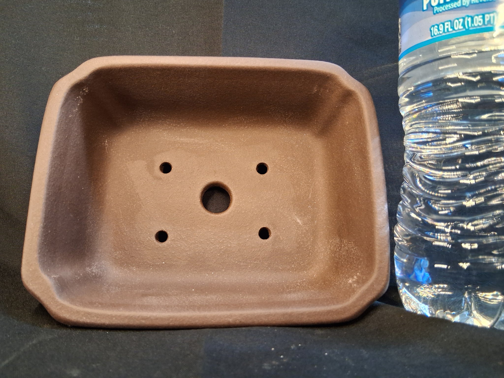 Small zisha unglazed bonsai pot. Approximate dimensions inside 5 3/8 x 4 1/8" x 1 1/2"