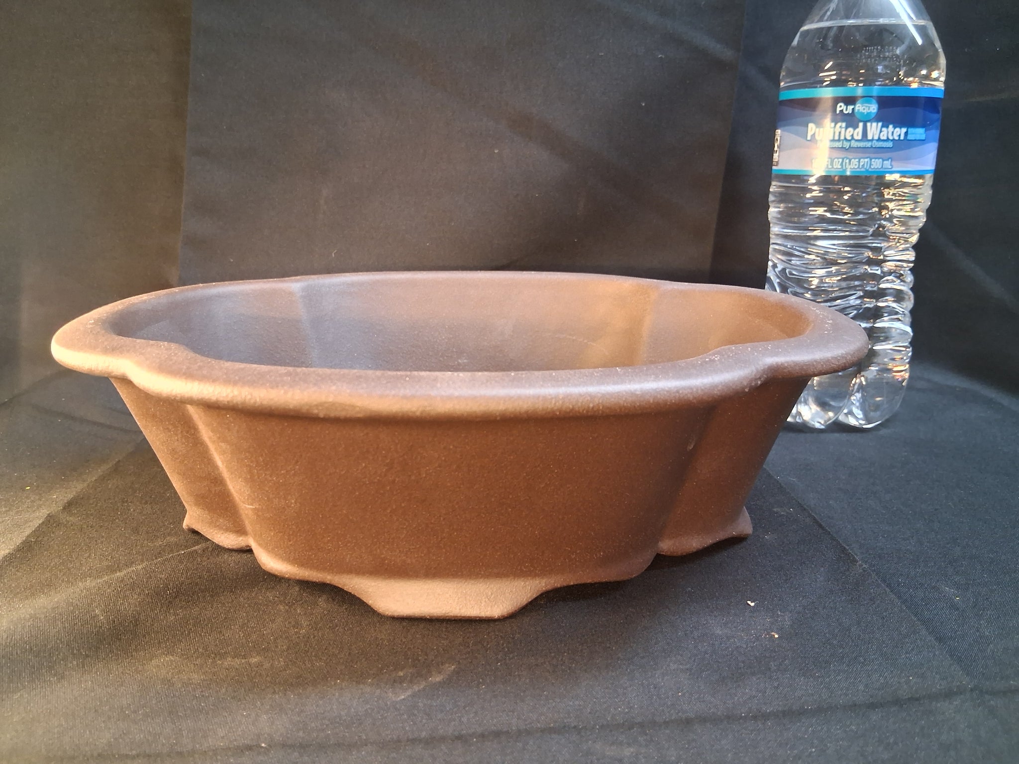 Quince shaped unglazed bonsai pot. Higher quality pot made of yixing clay.