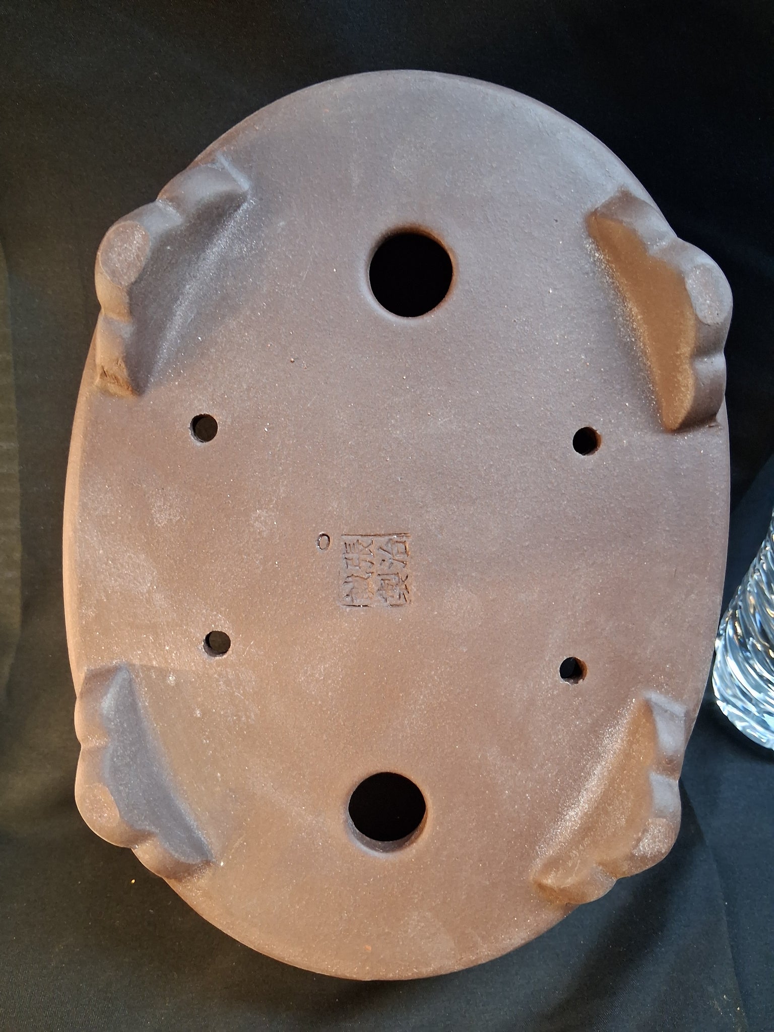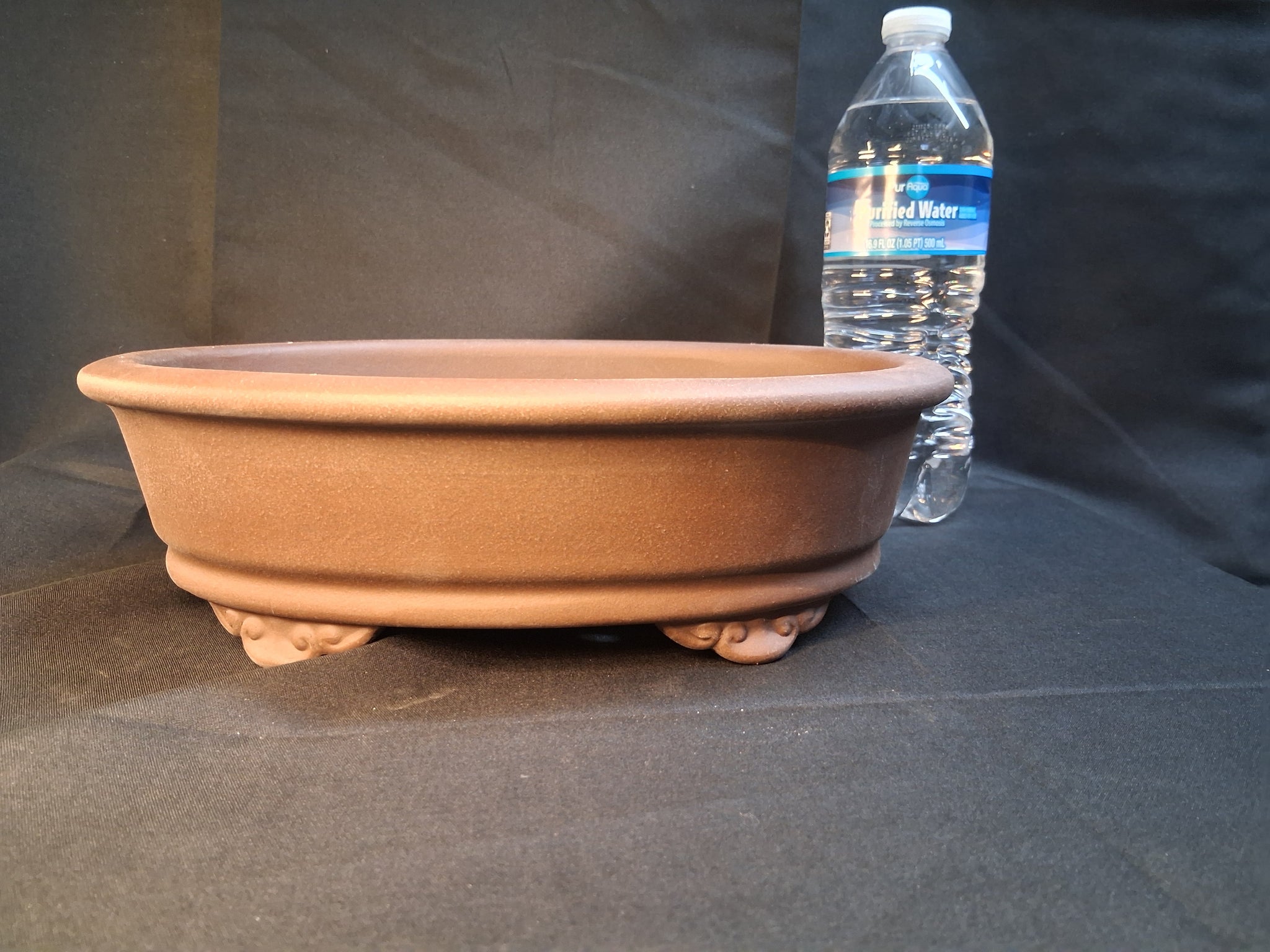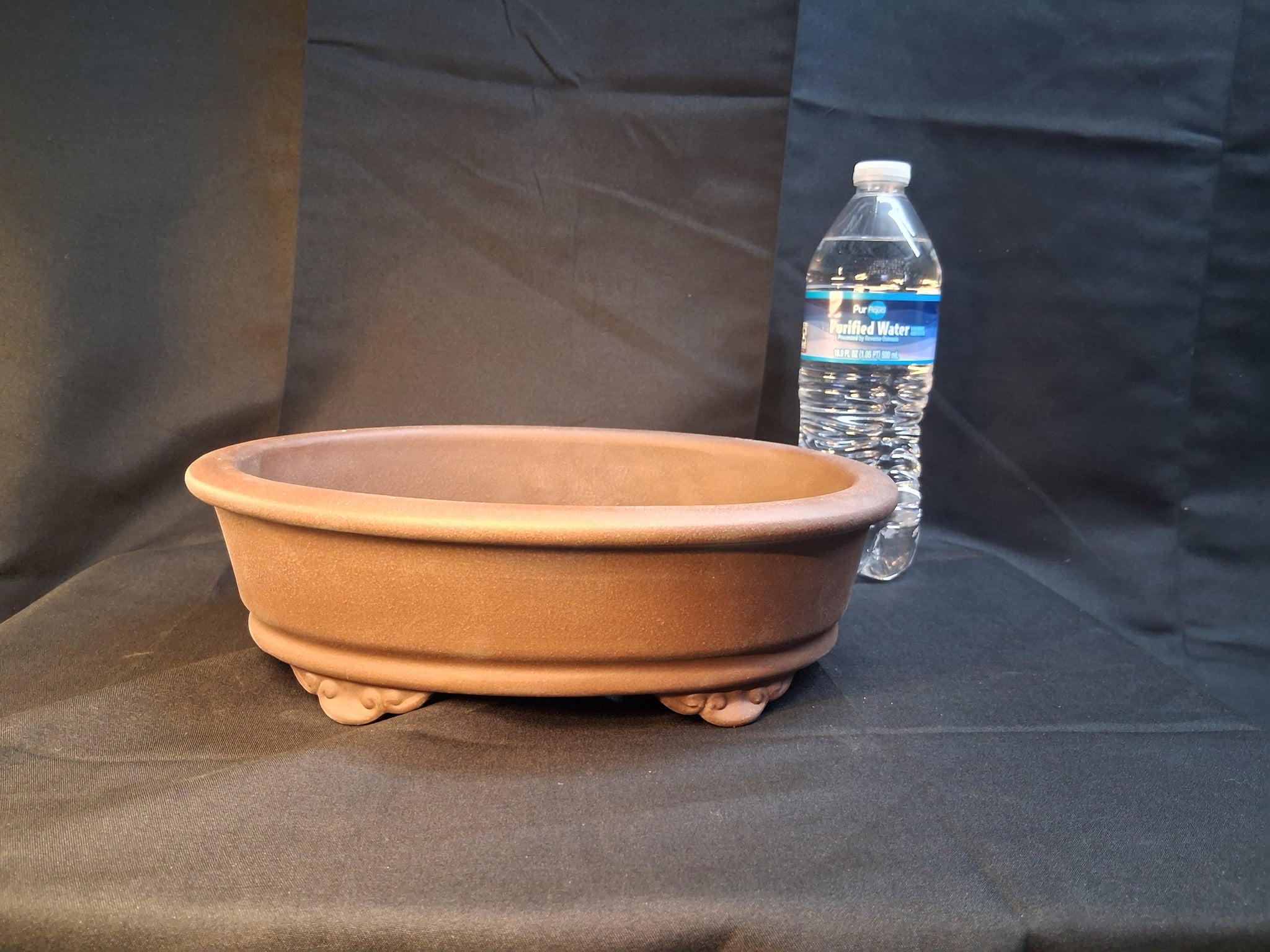 Traditional oval,  footed bonsai pot. Approximate dimensions (inside) 8 1/2 x 6 3/8 x 2"