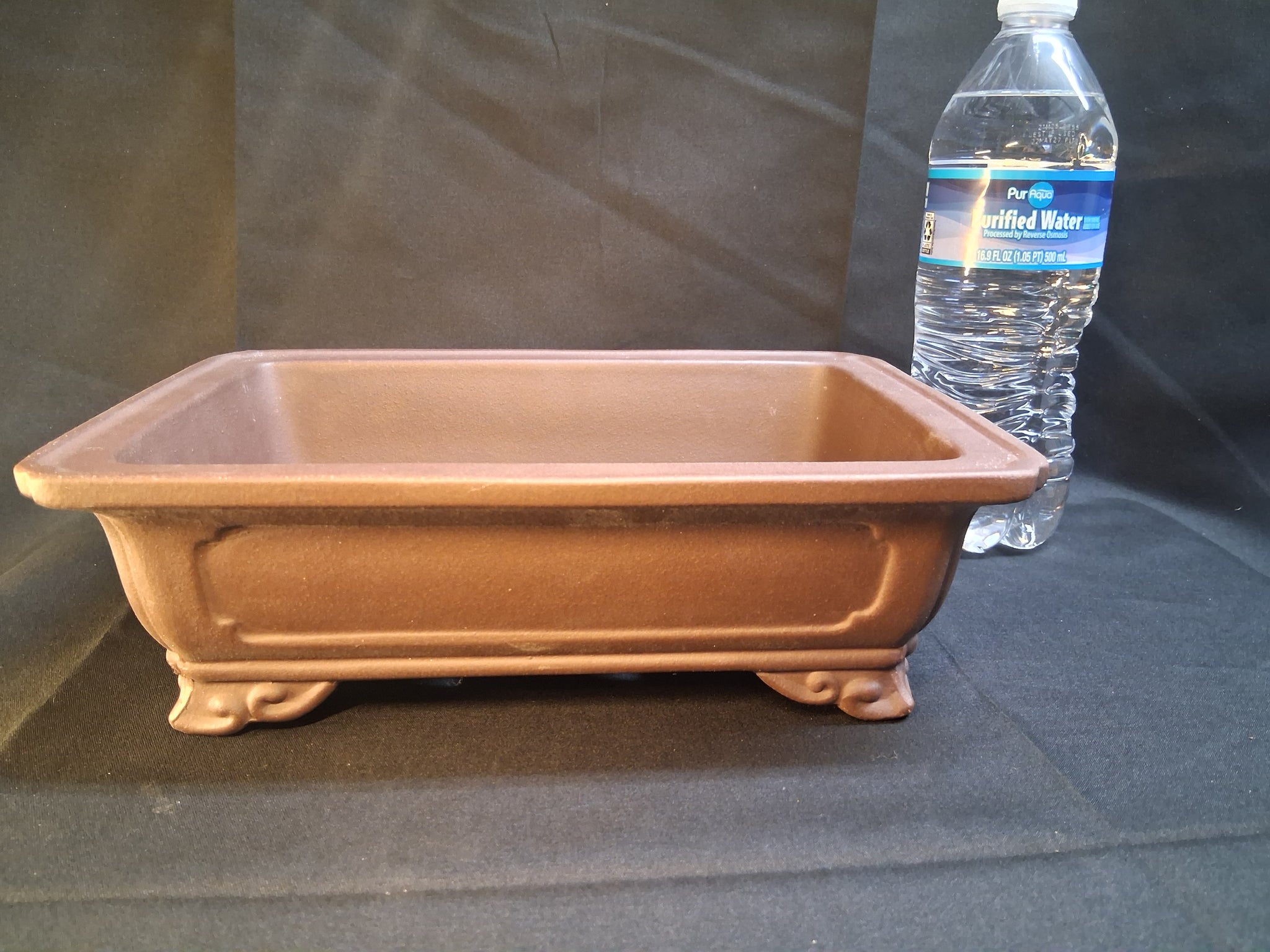 Traditional footed style unglazed bonsai pot. Higher quality pot. Yixing clay. Approximate dimensions (inside) 8"x5"x2"