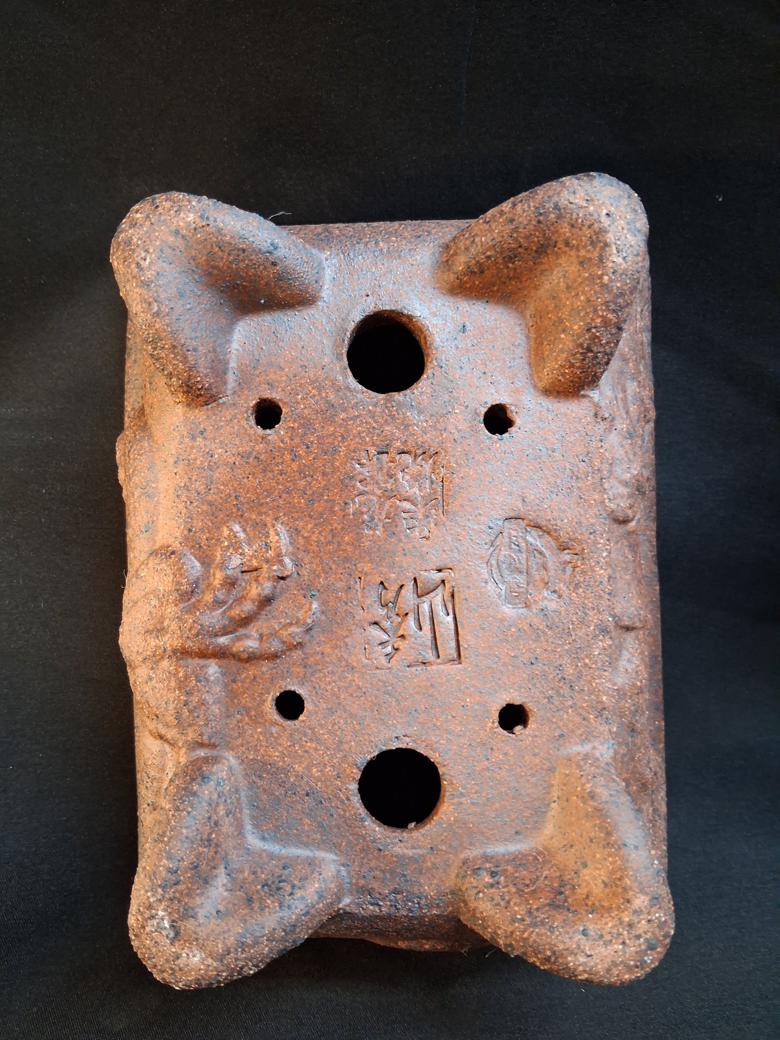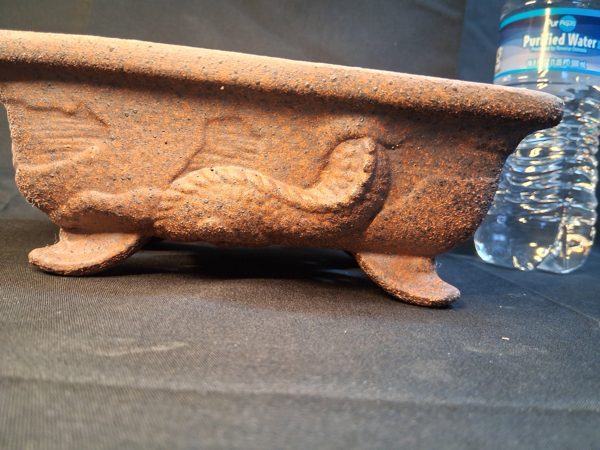 Dragon or serpent design on this unique pot. Approximate dimensions (inside) 5 3/4"x 4" x 1 3/4".