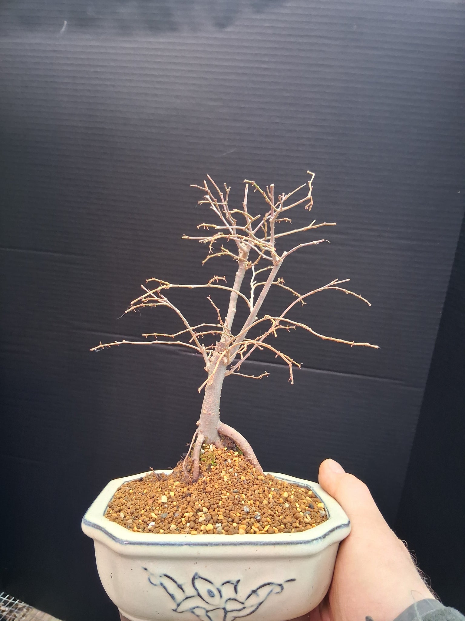 Zelkova serrata in 6" ceramic pot. Exact tree. Approximately 5-6 years old.
